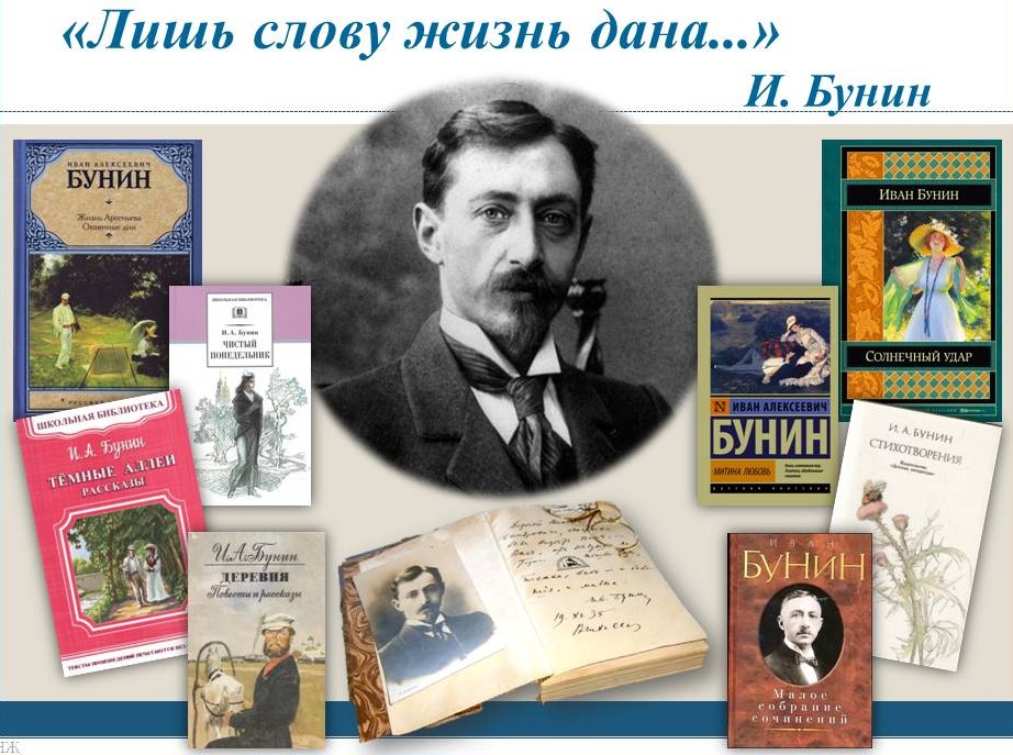 Иван Александрович Бунин много путешествовал и побывал в Европе, Азии, Африке. Во время гражданской войны России в 1920 году Бунин эмигрировал во Францию. В эмиграции Бунин активно продолжает заниматься литературной деятельностью, пишет лучшие свои произведения: «Митина любовь», «Солнечный удар», а также главный в жизни писателя роман – «Жизнь Арсеньева», который приносит Бунину Нобелевскую премию в 1933 году. В дипломе лауреата отмечено, что автор «воссоздал в художественной прозе типичный русский характер. В книге раскрыты темы, волновавшие писателя в течение всего времени его творчества, а лейтмотивом романа стал безвозвратно ушедший уклад эпохи. Бунин рассказывает о становлении характера и мировоззрения главного героя Алексея Арсеньева на протяжении четверти века. В романе филигранно описана юность и молодость поколения- современников писателя. Годы Второй мировой войны Бунин провел в Грасе. Написанные в 40-е годы рассказы составили книгу «Темные аллеи», впервые изданную в Нью-Йорке в 1943 году.