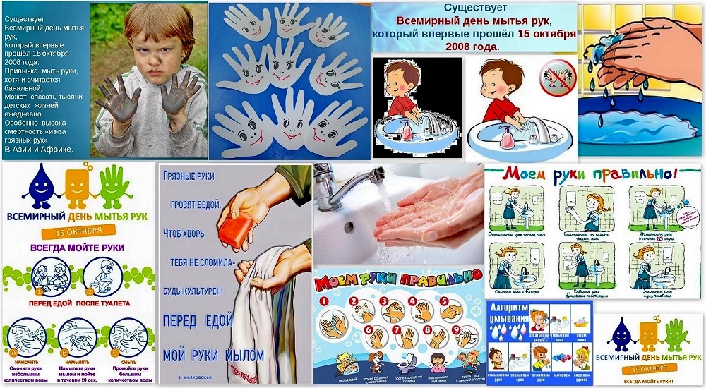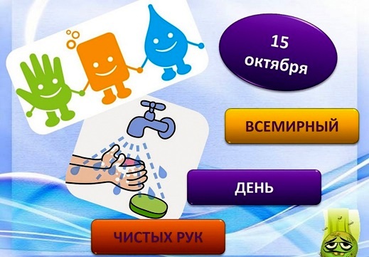 15 октября ежегодно отмечается Всемирный день мытья рук , который посвящён основам личной гигиены. Девиз Дня — «Чистые руки спасают жизнь».
