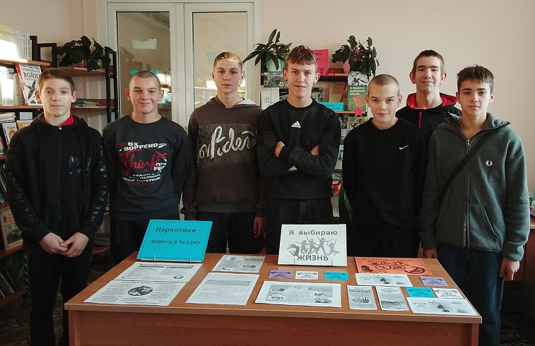 Ребята узнали о вреде наркотиков, о том, что их употребление особенно сильно влияет на несформировавшийся организм, постепенно разрушая его: снижается иммунитет, поражается печень и мозг, нарушается психика, а часто бывает и смертельный исход. Поговорили о том, как суметь отказаться, если предлагают наркотики, какие есть правила, чтобы не поддаться на провокацию и суметь сказать «нет». Библиотекарь рассказала школьникам и об уголовной ответственности за хранение, распространение и употребление психоактивных веществ, а также напомнила, что есть Единый всероссийский телефон доверия, куда можно обращаться за помощью, в случае принуждения к употреблению наркотиков.